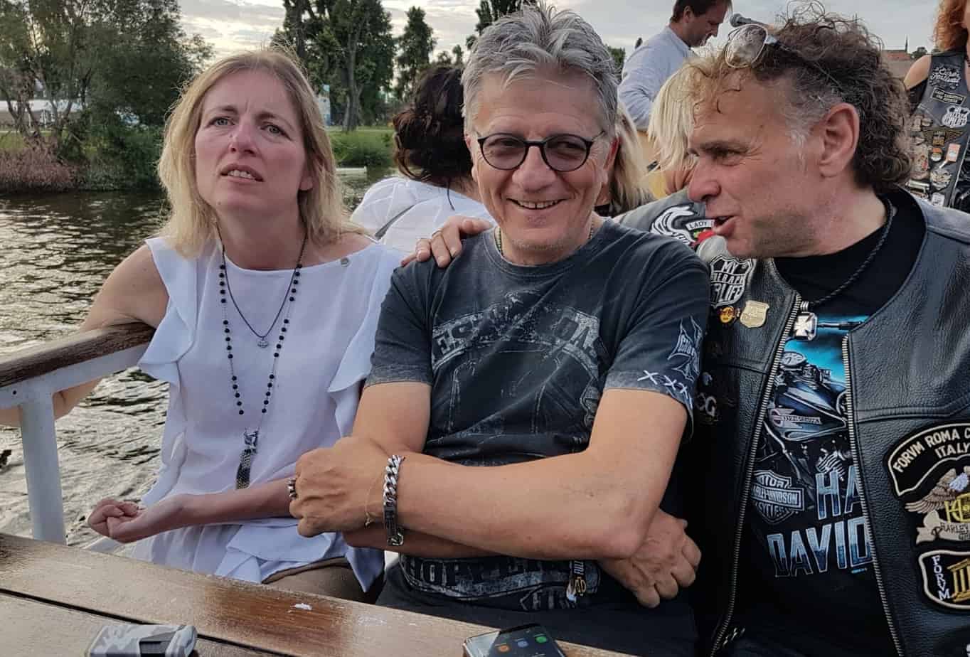 Zitti Zitti, non diciamo nulla a nessuno, vogliamo fare la sorpresina. Arriviamo in aeroporto con 2 ore di anticipo e ci siamo nascosti… due ragazzini! Poco prima dell’imbarco vediamo da lontano i nostri 6 compagni di viaggio, con i quali abbiamo condiviso un’esperienza bellissima. A partire dall’abbraccio di Michaela. L’emozione della sorpresa le ha fatto gli occhi lucidi e io dietro a lei, due bikerine che si stringono e piangono in aeroporto, pur viaggiando con lo stesso volo, e con la stessa destinazione è abbastanza inusuale. Ma le donne sono anche questo, dietro la corazza da biker vivono emozioni vere. Inizia così la nostra avventura. I nostri compagni di viaggio, oltre a Miky, sono: Mauro, Pam e Fabio, Paolo er Ciriola e Nicoletta. L’incontro a Praga, con Fabrizio, Carla, Fabbro, Giulia ha completato il gruppetto che in due giorni non si è mai diviso. E poi… ta tannnn… Massimo e Tina che insieme a Fausto e Erna sono stati i primi a tagliare il traguardo di Praga.